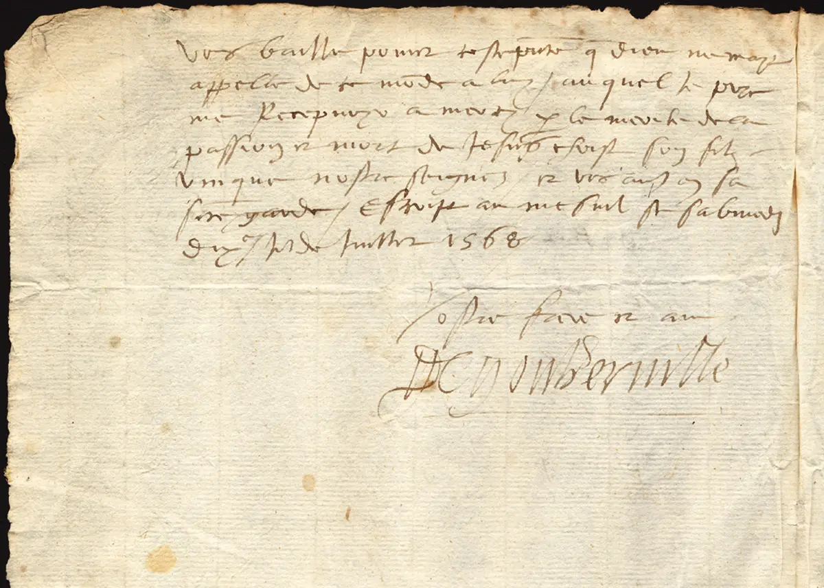 Lettres autographes de Guillaume de Gouberville et de Jeanne du Fou. (© Archives départementales de la Manche – Cliché A. Poirier)