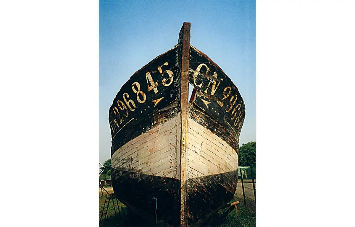 Le Saint-Maurice sur son « quai de l’oubli » à Honfleur. L’étrave est en chêne. La coque du bautier est généralement noire. (Photo Thierry Georges Leprévost © Patrimoine Normand)