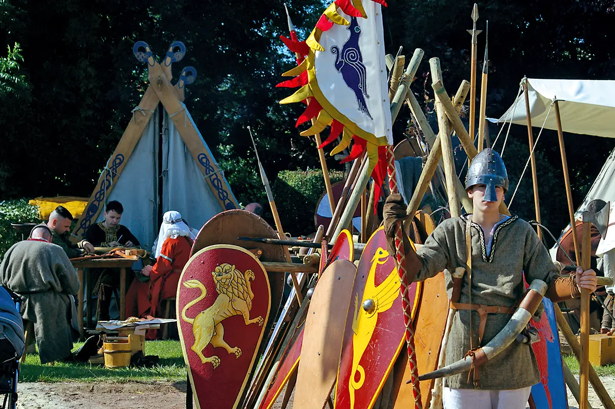 Ainsi, la fête normande organisée par la municipalité d’Octeville-sur-mer, sur un scénario du dynamique Thierry Lemaire (Eriamel – Assor BD), était consacrée à ces deux grandes périodes de l’histoire normande, celle des Vikings et celle de Guillaume le Conquérant. Dès le vendredi soir, et surtout le samedi matin 24 juin, deux grands campements se sont installés, évoquant ces deux périodes. Ils regroupaient cent dix reconstitueurs, tous venus de Normandie. Le public venu très nombreux le samedi (quatre à cinq mille visiteurs) put ainsi visiter les campements. Sur celui évoquant l’époque des Vikings, on pouvait voir un bateau viking reconstitué, l’Olav Kyrre, de Thorvald aventure qui était déjà un vétéran de la haute mer ; il a traversé la Manche avec succès l’an dernier en avant première de la commémoration de la bataille d’Hastings.