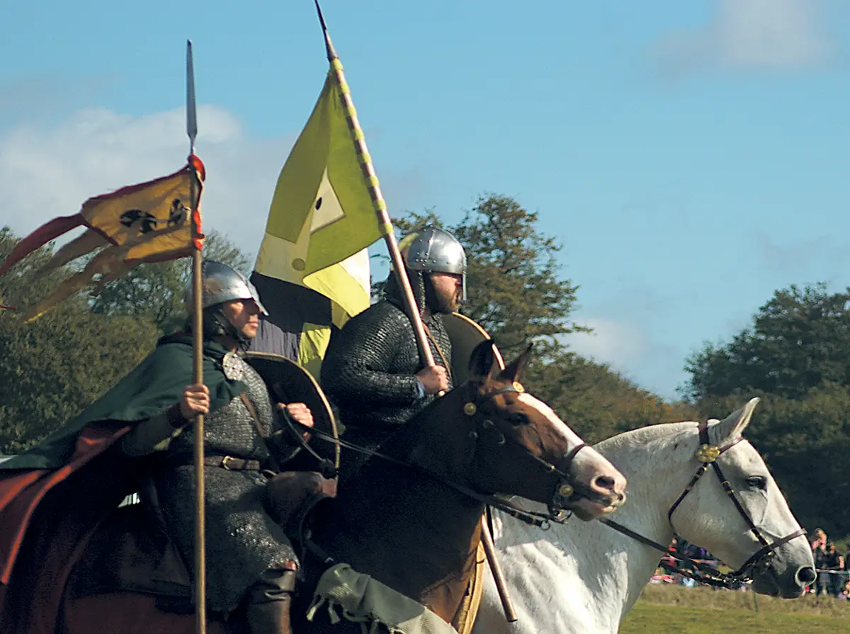 Selon les termes du présentateur anglais à Hastings, la cavalerie normande est alors la meilleure de tout l’Occident médiéval. Disciplinée, très entraînée, manœuvrant avec efficacité dernière les bannières de conrois (l’équivalent de nos modernes escadrons de cavalerie), « c’est l’élite », selon les termes du présentateur anglais – moment d’émotion au milieu d’un public anglais admiratif devant les évolutions de ces « cavaliers normands » (en fait « figurants » anglais…) lors de la présentation précédant la reconstitution de la bataille. C’est cet entraînement intensif et cette discipline exemplaire qui permirent à la cavalerie normande de mener des retraites simulées entraînant à leur suite des Saxons qui tombèrent ainsi sous les coups des Normands. Hastings fut tout sauf une mêlée confuse, même si certaines phases le furent. La victoire a été acquise dans l’après-midi grâce à une tactique parfaitement maîtrisée. (© Histoire-Vivante, F. Corne – Hastings 2006)