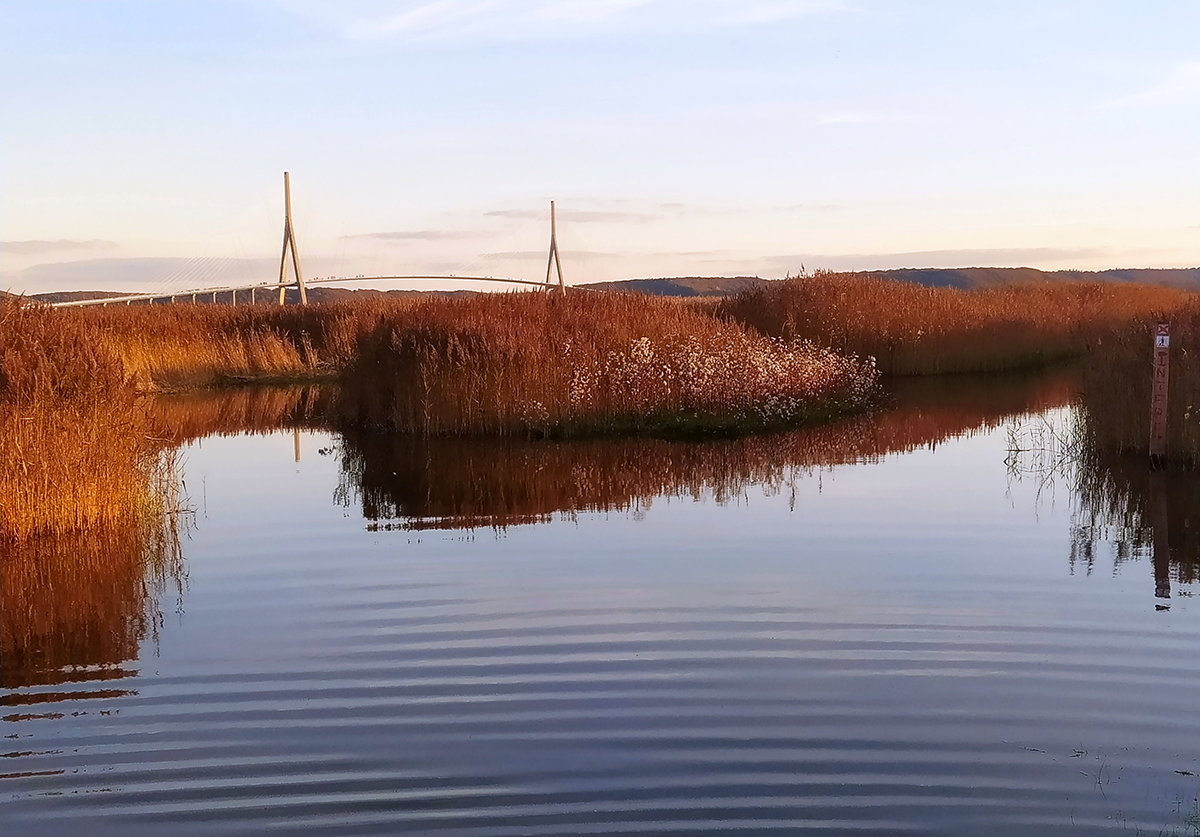 Au pied du pont de Normandie s’étendent de vastes roselières. (© Stéphane William Gondoin)
