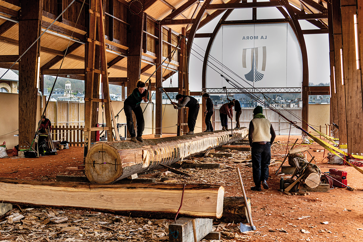 La Mora, navire amiral du duc Guillaume lors de la conquête de l’Angleterre, est uniquement connue par les textes médiévaux et la Tapisserie de Bayeux. Cependant, à Honfleur, l’association du même nom a lancé le projet fou de construire ce bateau mythique. S’il ne s’agit pas d’une réplique, puisqu’aucune trace du navire ne nous est parvenue, cela reste un projet d’une ampleur gigantesque qui permettra à chacun de mieux comprendre l’ingéniosité des charpentiers de marine du XIe siècle. Après dix-huit mois de travaux de réhabilitation, le site de construction du navire est ouvert au public depuis le 23 mars 2024.