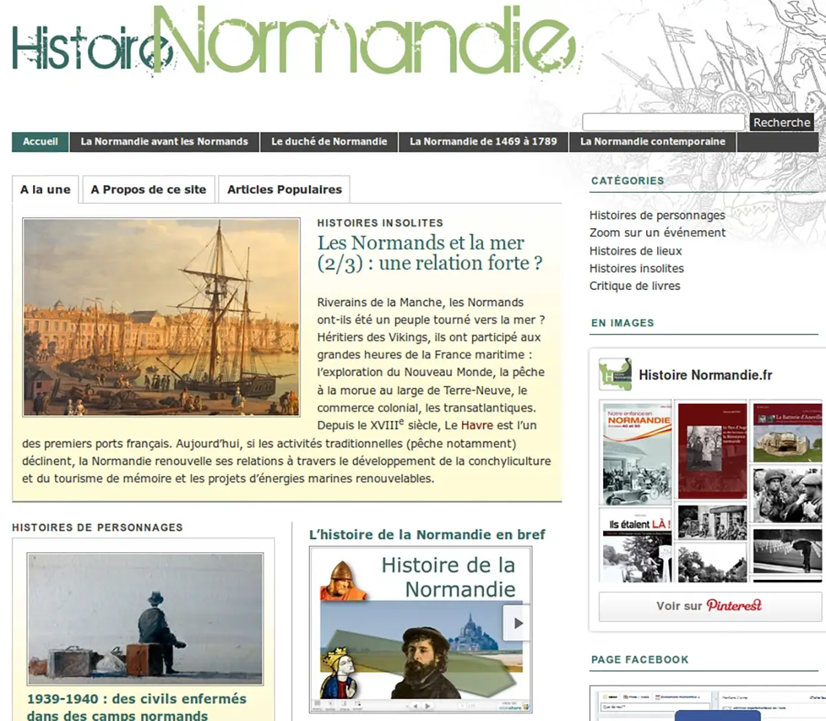 Notre ami et collaborateur Laurent Ridel, qui a signé deux des articles que vous pourrez découvrir dans le numéro 90 de Patrimoine Normand, est également le créateur et l’animateur d’un site Internet entièrement consacré à l’histoire de notre région : www.histoire-normandie.fr. En s’appuyant sur les travaux de chercheurs reconnus et en allant puiser dans les meilleures sources, cet historien de formation veut à terme offrir au plus grand nombre un panorama complet de toute la richesse et de toute la diversité historiques normandes, depuis la Préhistoire jusqu’à nos jours. L’iconographie présentée est particulièrement bien choisie et le propos, à la fois clair, concis et précis, convient parfaitement à la lecture sur écran. À lire notamment, sur fond d’actualité brûlante, une très bonne analyse, purement historique, sur les origines des divergences entre Haute et Basse Normandie. La conclusion met davantage le doigt sur les points de convergence : « Les facteurs de rapprochement sont au moins aussi nombreux que les fractures […] Auprès d’inconnus, un Normand se présente rarement comme un Haut-Normand ou un Bas-Normand. La fusion des deux Normandie a indéniablement une pertinence. » Dans une interview donnée en 2004 au magazine L’Express, Serge Antoine, l’homme qui procéda au découpage des régions en 1960, confirmait lui-même : « Si c’était à refaire, je ne ferais qu’une seule Normandie. » Comme le pont de Normandie au-dessus de la Seine, Histoirenormandie.fr est un trait d’union entre tous les Normands.