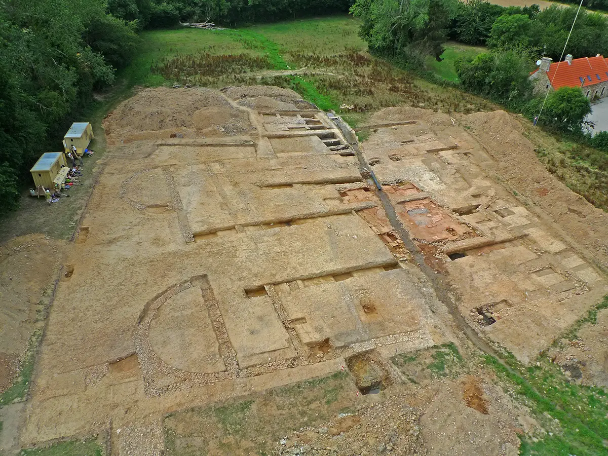 Dans le Val de Saire, entre Valognes et Saint-Vaast-la-Hougue, de paisibles prés dissimulent les vestiges d’une agglomération antique insoupçonnable. Les fouilles de Montaigu-la-Brisette, dans ce que nous pouvons appeler le Quartier des Thermes, ont révélé un centre structuré par un ruisseau aménagé, autour des thermes publics, dotés d’un moulin hydraulique et d’espaces d’habitation et de stockage. Une découverte qui éclaire l’organisation du territoire antique dans le nord du Cotentin.