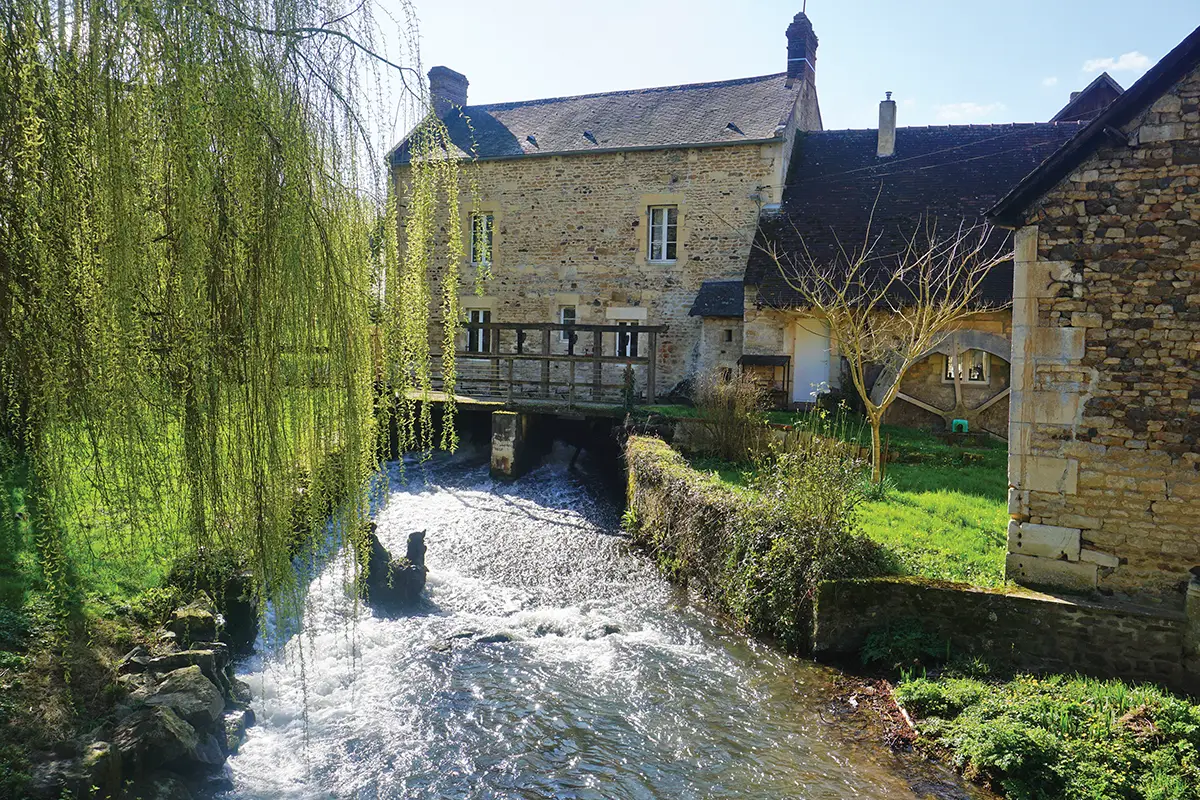 Le moulin de Jouette, à Fresney-le-Puceux, est l’un des rares moulins de la vallée de la Laize qui se soit consacré à la mouture de la farine jusqu’en 1945 et dont les bâtiments ont été conservés et rénovés. (© Mireille Thiesse)